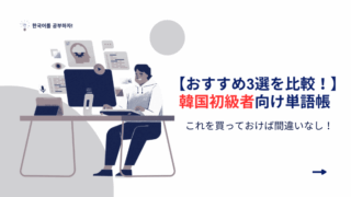 韓国語_入門・初級 【おすすめ3選を比較!】韓国語初級者向けの単語帳 韓国語の勉強、初級者はどの単語帳を選べばいいのか?本日はそのようなお悩みを解消していきたいと思います。これを選んでおけば間違いありません。『韓国語能力試験TOPIK1・2 初級単語800』『キクタン韓国語 【初級編】』『できる韓国語 初級 単語集』3冊を徹底比較! 2025.10.07 韓国語_入門・初級