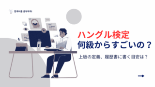 韓国語_試験勉強 ハングル検定は何級からすごいのか? ハングル検定は、何級からすごいのか?本日はそのような疑問を解消していきたいと思います。上級は何級からなのか?履歴書に書く目安は何級なのか?試験形式などの違いはありますが、英検の水準でいくと転職活動や就職活動において、ハングル検定2級以上が履歴書に書く目安です。 2025.10.14 韓国語_試験勉強