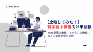 韓国語の上級者向け単語帳は何を選べばいいのか?本日はそのようなお悩みを解消していきたいと思います。hanaの韓国語単語〈上級編〉、キクタン韓国語上級編、韓国語能力試験TOPIK5・6高級単語800、「ハングル」検定公式ガイド 合格トウミ 上級編の単語帳を比較!