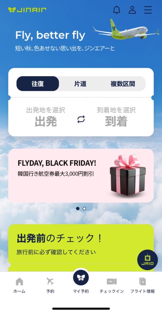 JINAIR 渡韓前にアプリ上で事前にやったこと
