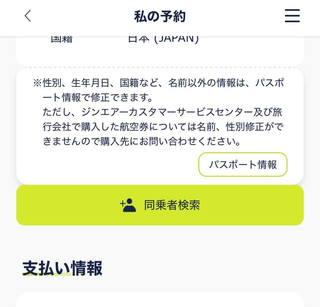 JINAIR  渡韓前にやったこと② パスポート情報の登録