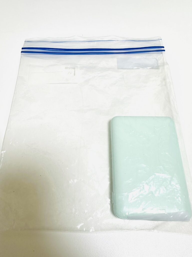 ・端子をテープで塞いだ状態で市販のジップロックに入れる。